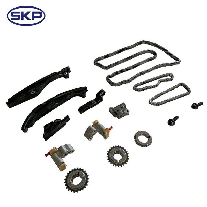 Kompletny zestaw do wymiany rozrządu w którego skład wchodzą koła zębate oraz łańcuch.